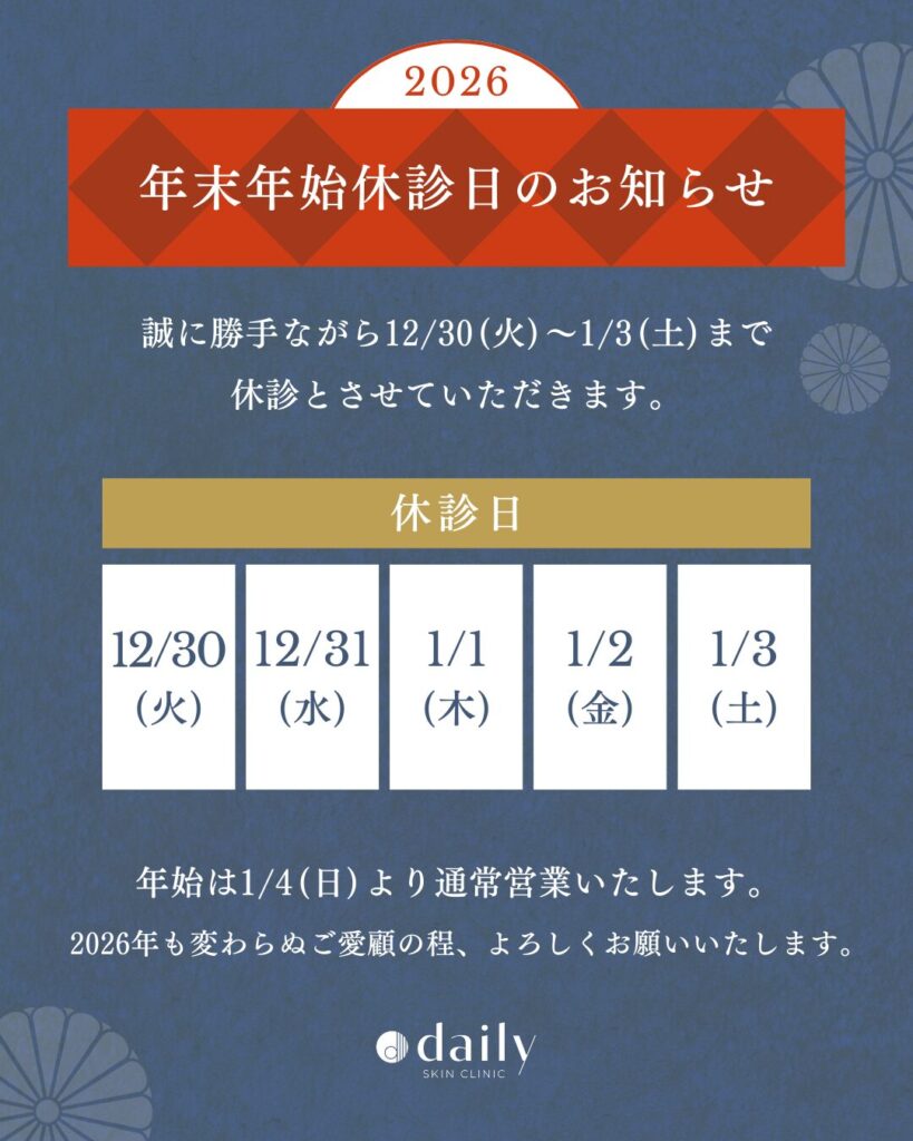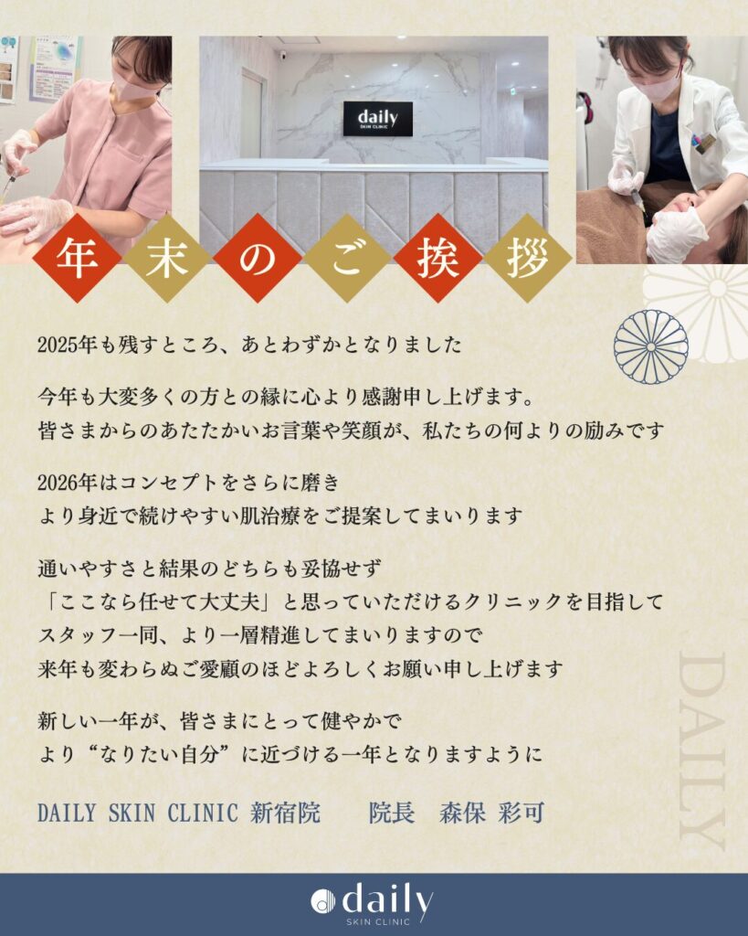 多くのお客さまとの出逢いに恵まれ無事に年の瀬を迎えることができました。 2026年も、どうぞデイリースキンクリニックをよろしくお願いいたします。