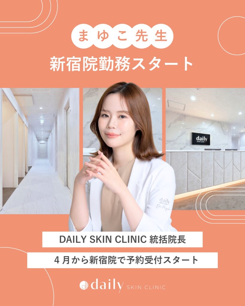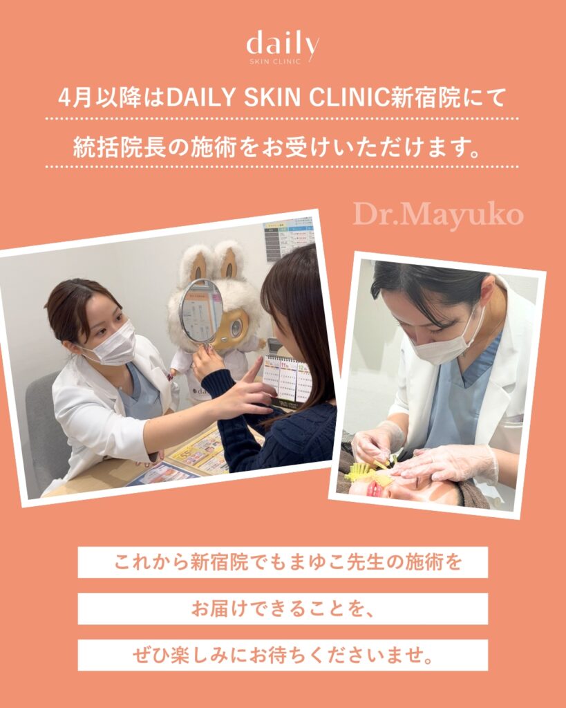 DAILY SKIN CLINIC 統括院長【まゆこ先生】の新宿院でのご予約受付が、📣 4月よりスタート👩⚕️㊗️