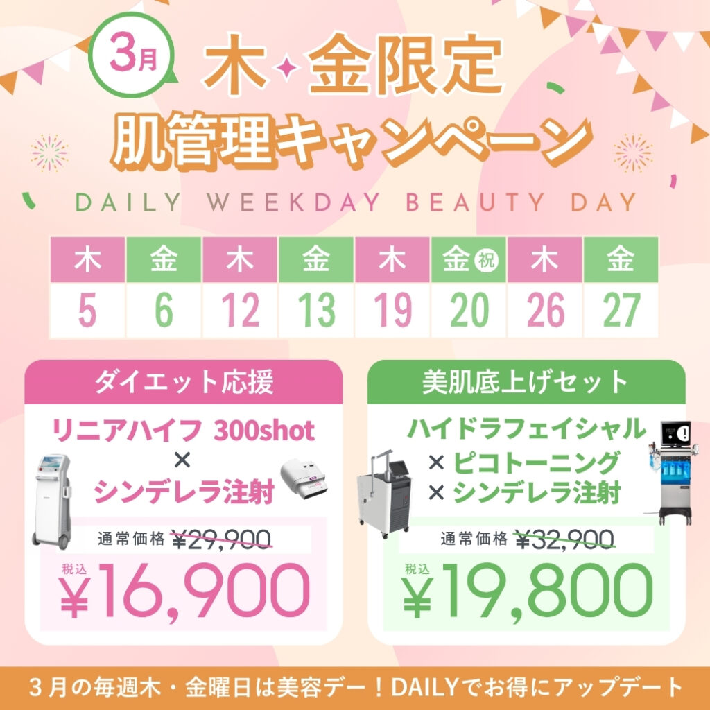 医療ダイエット or 美肌底上げ 🔥 3月は木・金曜がアツい 🔥