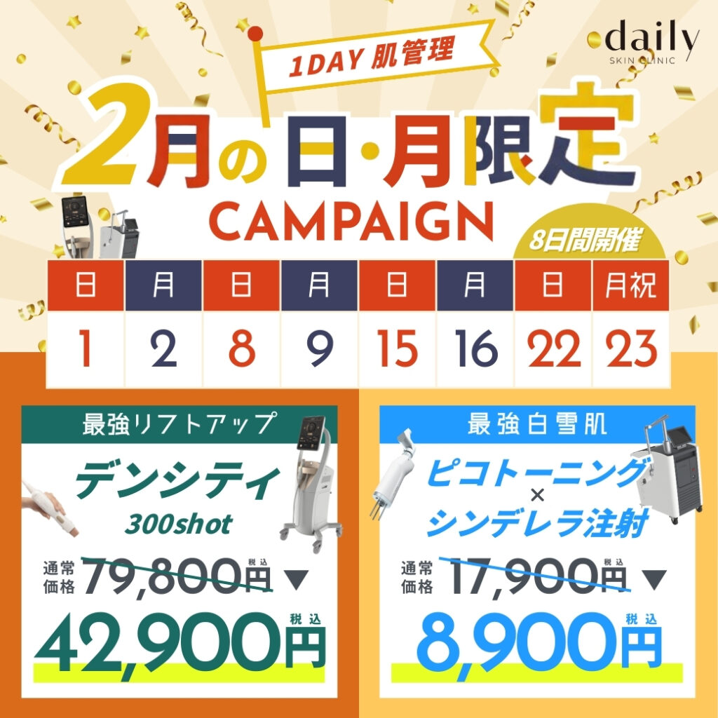 たるみ改善 or 白雪美肌 🎉 2月は日・月曜がお得 🎉