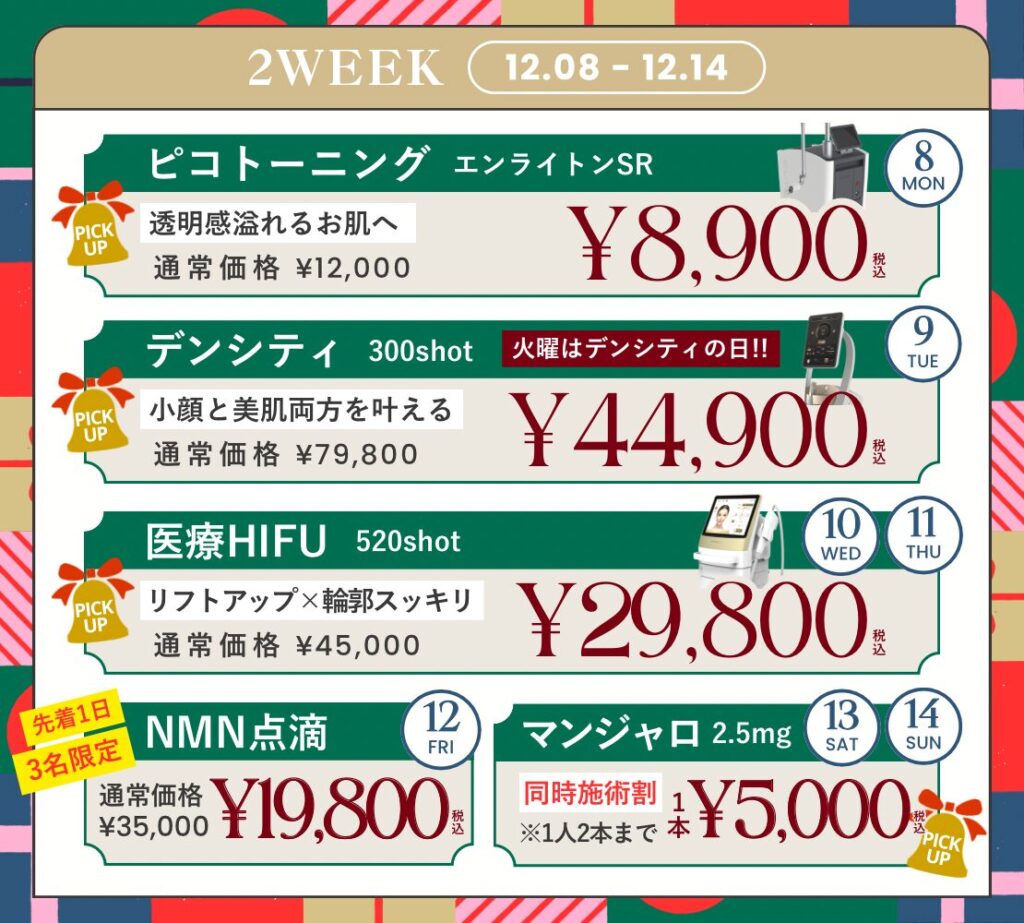 12月は日替わりで楽しめるお得な施術が盛りだくさん🎅🎀