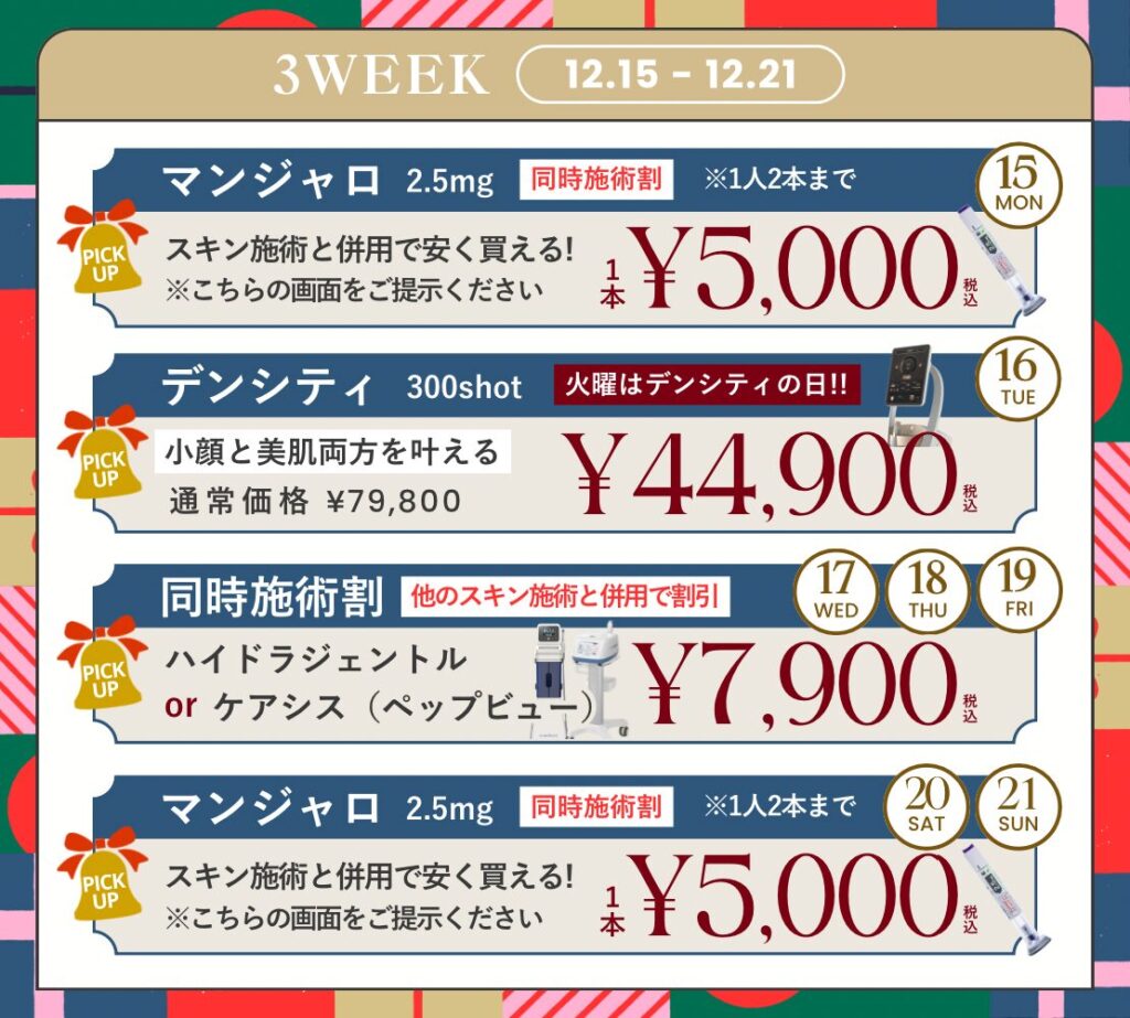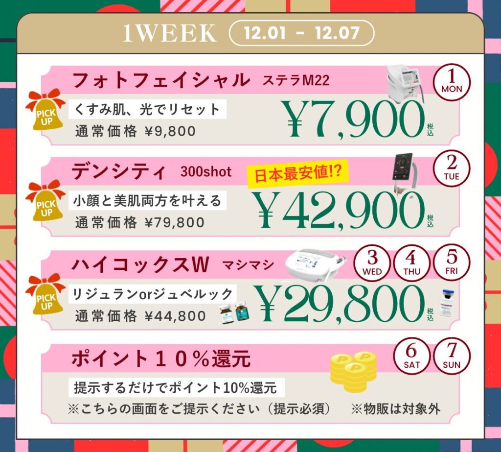 12月は日替わりで楽しめるお得な施術が盛りだくさん🎅🎀
