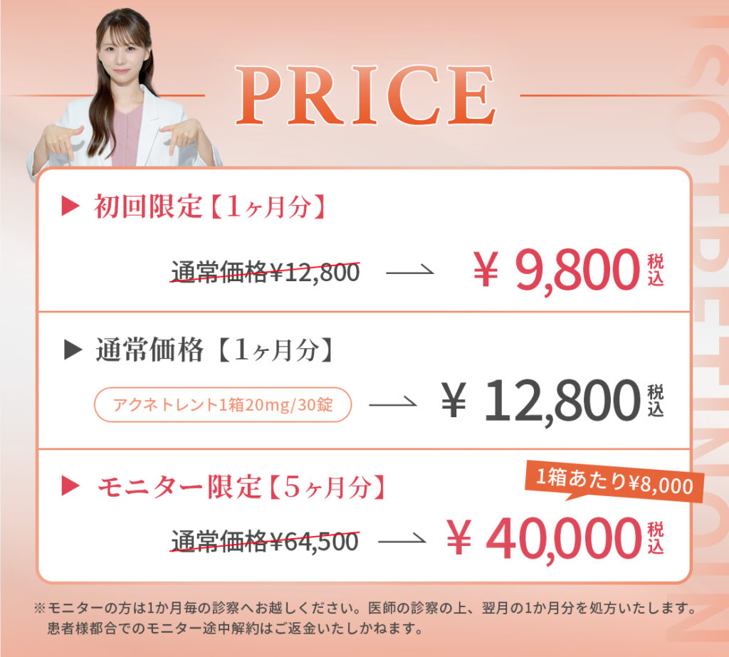 ※モニターの方は1ヶ月毎の診察へお越しください。